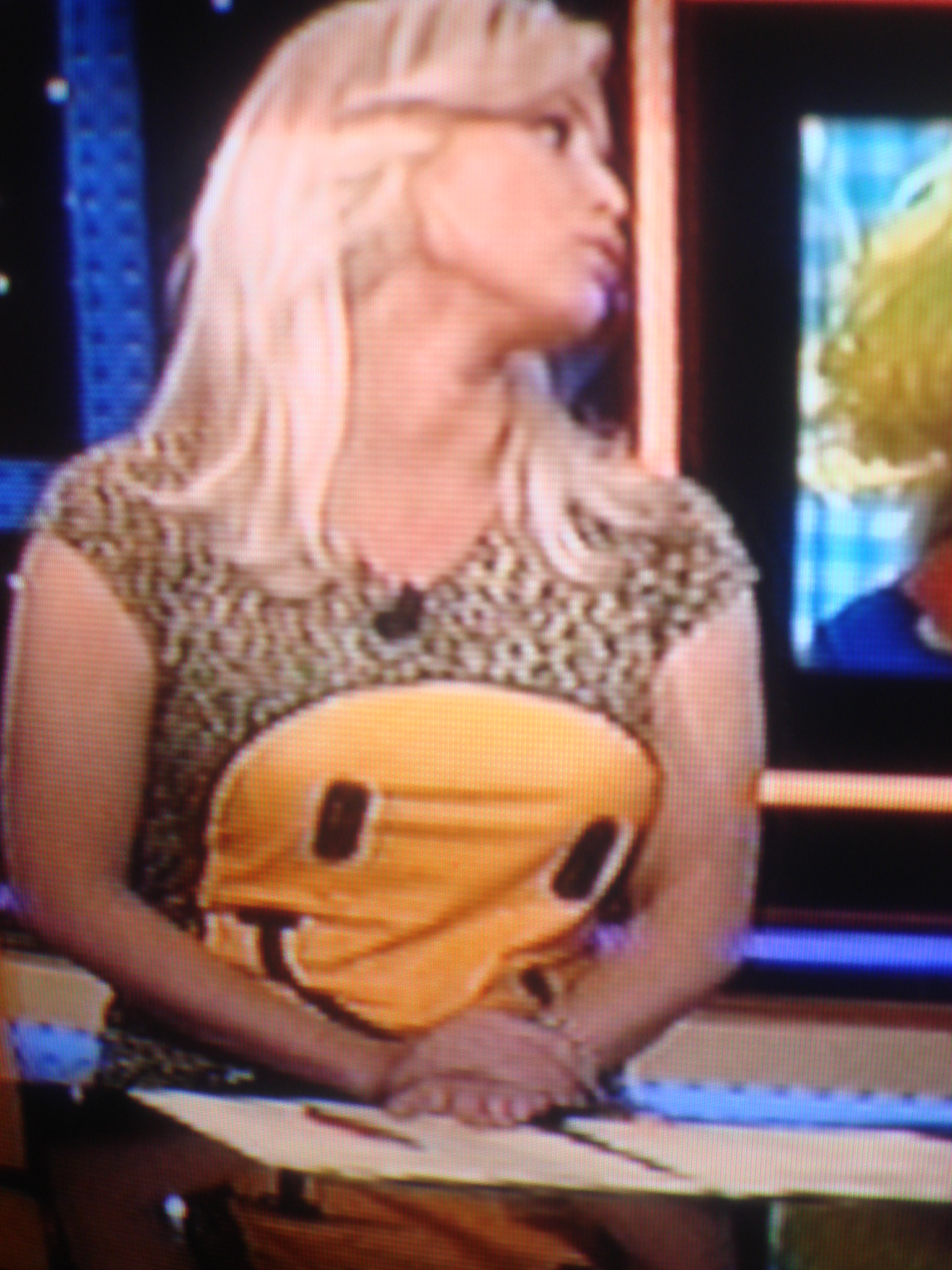 Smileys waren een tijdje leuk, lief, grappig. Maar inmiddels sta je bekend als een josti, wanneer je een 🙂 in je e-mailtjes plakt. Op t-shirts zijn de rare gele grappenmakers nooit hip geweest, dus waarom Bridget Maasland (of is dit Tooske?) hier een smiley gecombineerd met luipaardenmotief draagt is een raadsel. Misschien was haar stylist een dagje ongesteld.